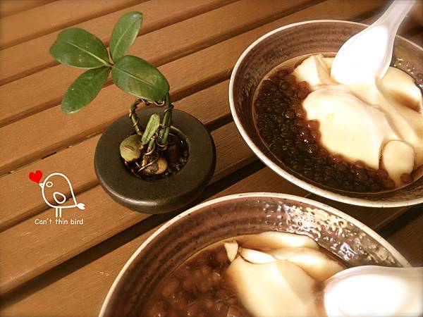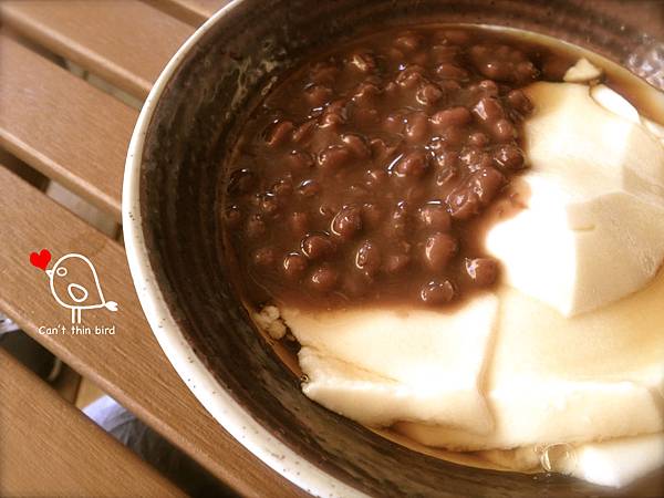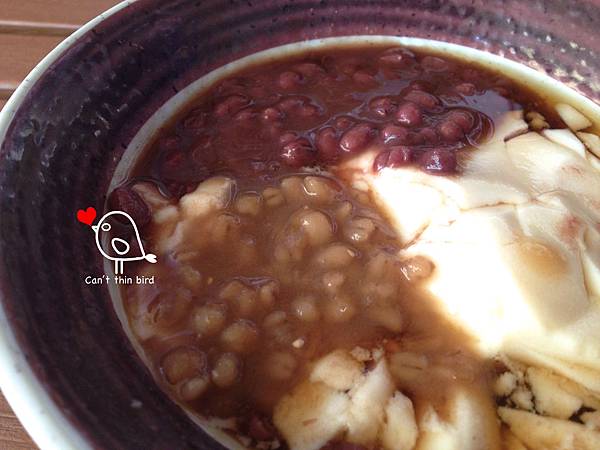 鳥為了養顏美容點了紅豆豆花,後來又加碼添入看起來很像綠豆的薏仁